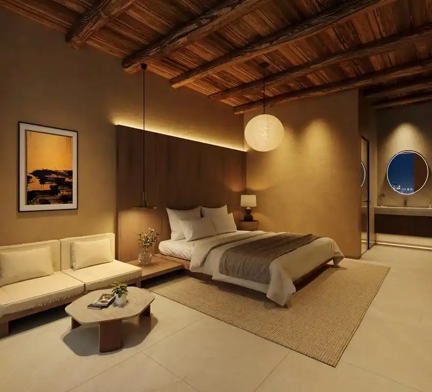 简洁而富有高级细节的现代极简风格,是城市精品民宿与设计酒店的首选。它通过克制的色彩、精炼的线条与富有质感的材质,营造出宁静、开阔且极具辨识度的空间,极易在社交媒体上形成视觉传播。